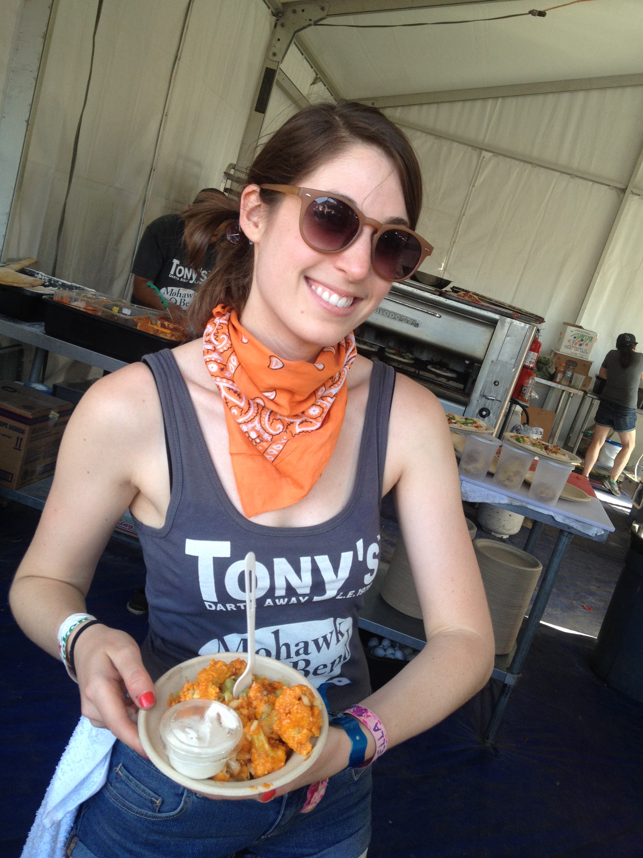 I had prepared to dine on greasy pizza and now am obsessing over Buffalo cauliflower with vegan bleu cheese dressing. Not the Coachella experience I expected.