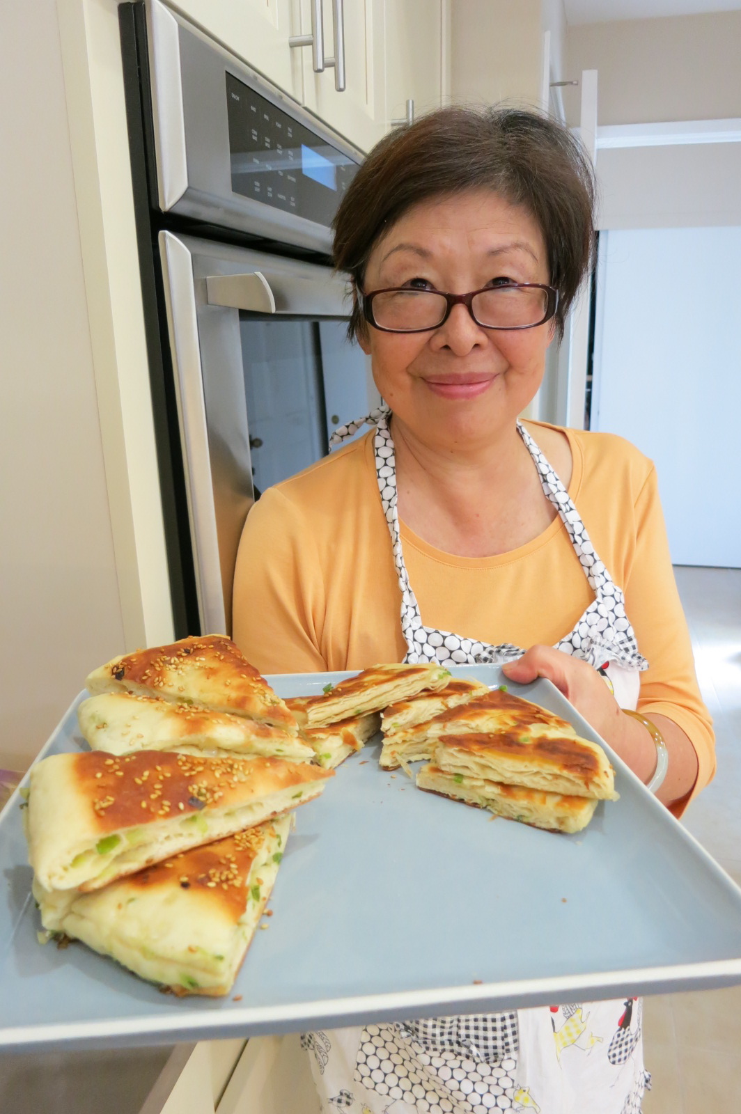 Last week we spent an afternoon together making green onion shao bing. It isn’t a family recipe, but I did manage to have my mother-in-law translate the recipe from Chinese to English for me. This is the first of what I hope are many Chinese recipes I will get my hands on and share.