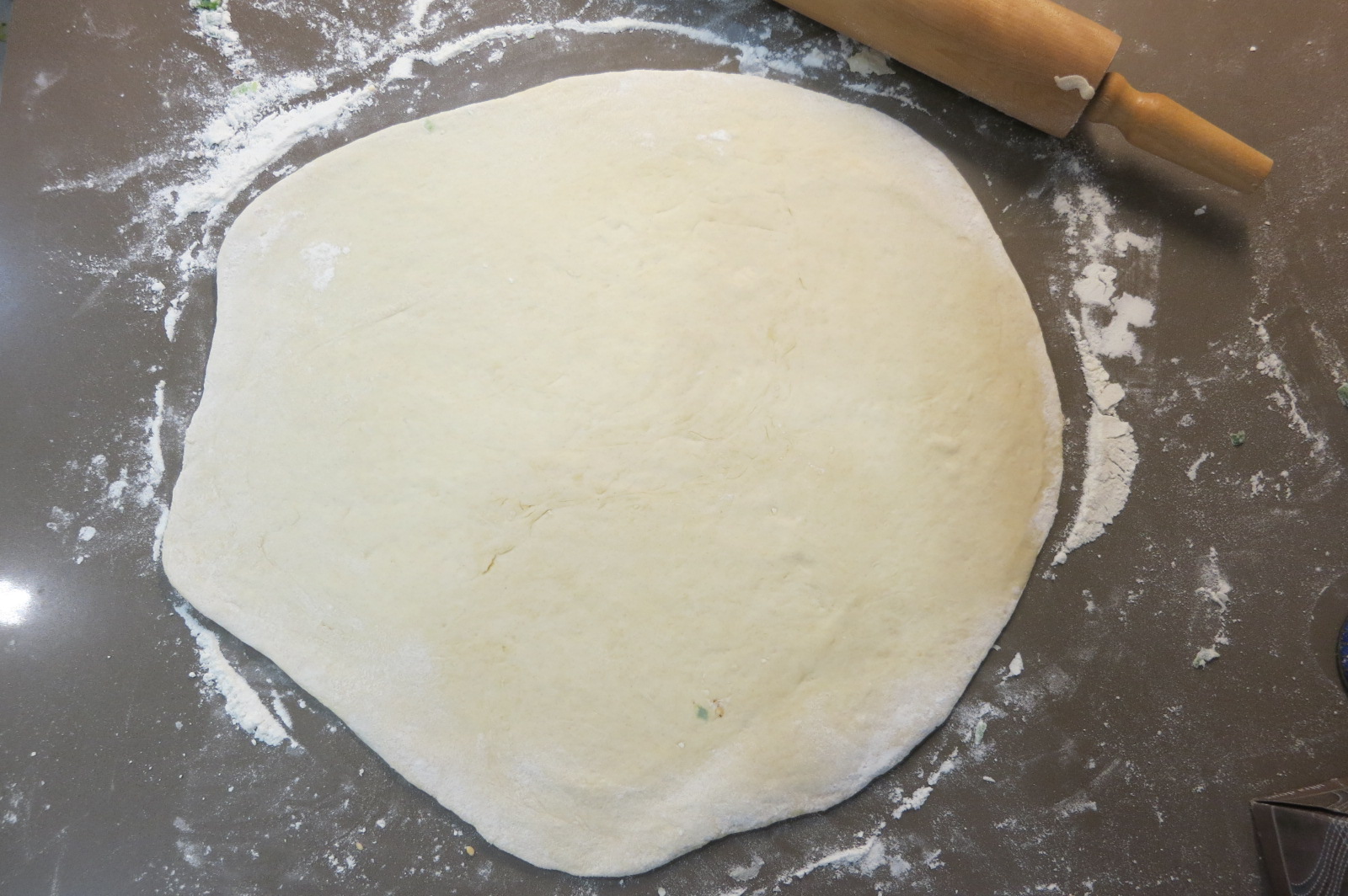 5. Roll dough into circular shape. It will feel a bit like pizza dough. Roll until thin.