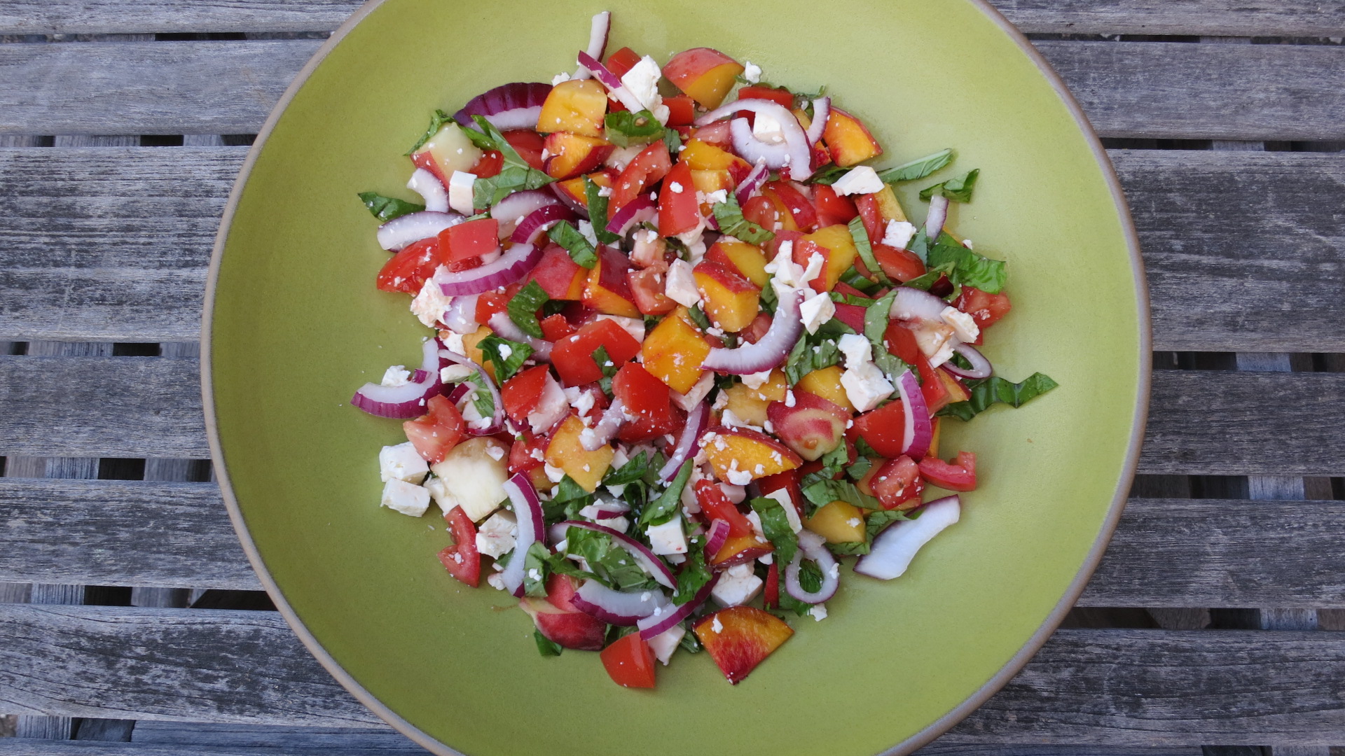 Peach Tomato Salad – adapted from Emmy’s Spaghetti Shack by way of my friend Audrey