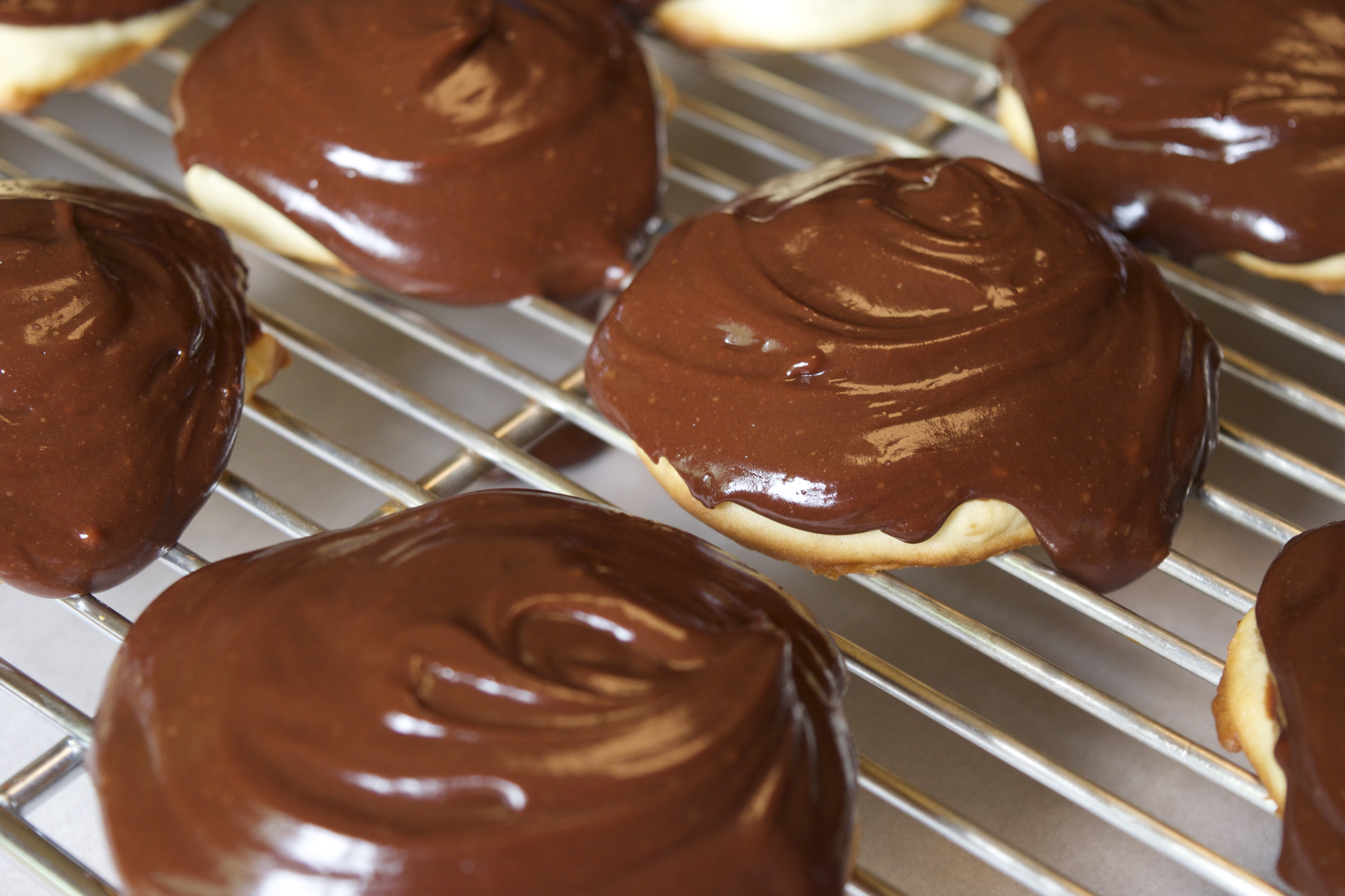 I remember my first bite of a Berger cookie. The cute box with the classic typography, the misshapen cookie disc, the fudgy top that’s a cross between chocolate icing and chocolate fudge. That first taste of soft white cookie and sweet chocolate had me immediately hooked. Every time my girlfriend would visit her East Coast boyfriend, I hoped she would bring back a box of Berger cookies and would feel like sharing them.