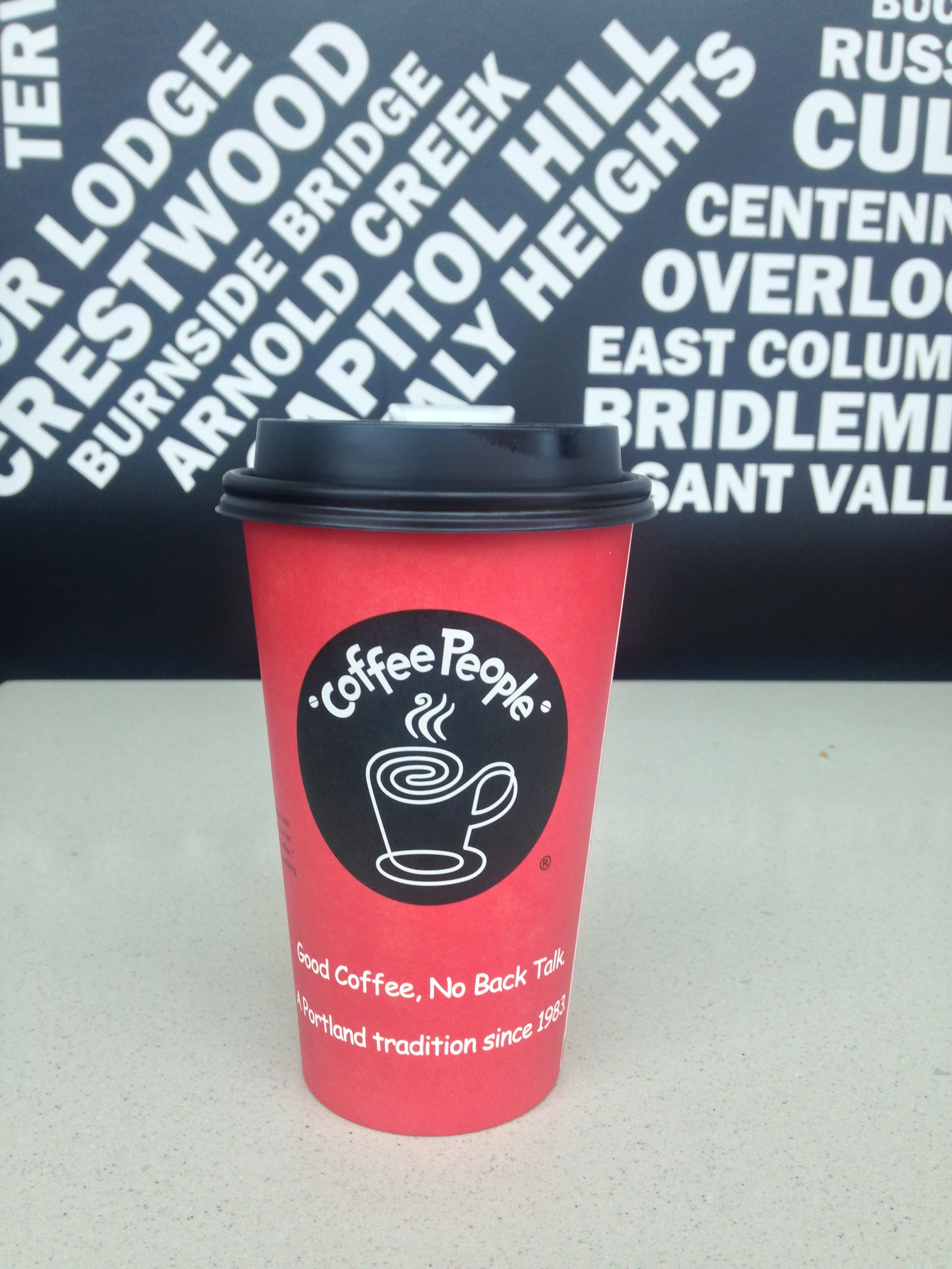 I wasn’t drinking a lot of coffee in the late ’90s/early 2000s, I was way too poor for that habit.  However, I loved a once-in-a-while splurge at the local hippie dippy Coffee People chain. From the typography on the red-and-white sign outside to the playful names of the coffee drinks–Girl Power, Velvet Hammer, Black Tiger Espresso– Coffee People was pure Portland before the onset of Stumptown, Heart, Extracto and numerous others. I loved that I could always count on receiving a chocolate covered espresso bean with my drink. They made their coffee strong and kept their business mantra simple: Good coffee. No back talk.
