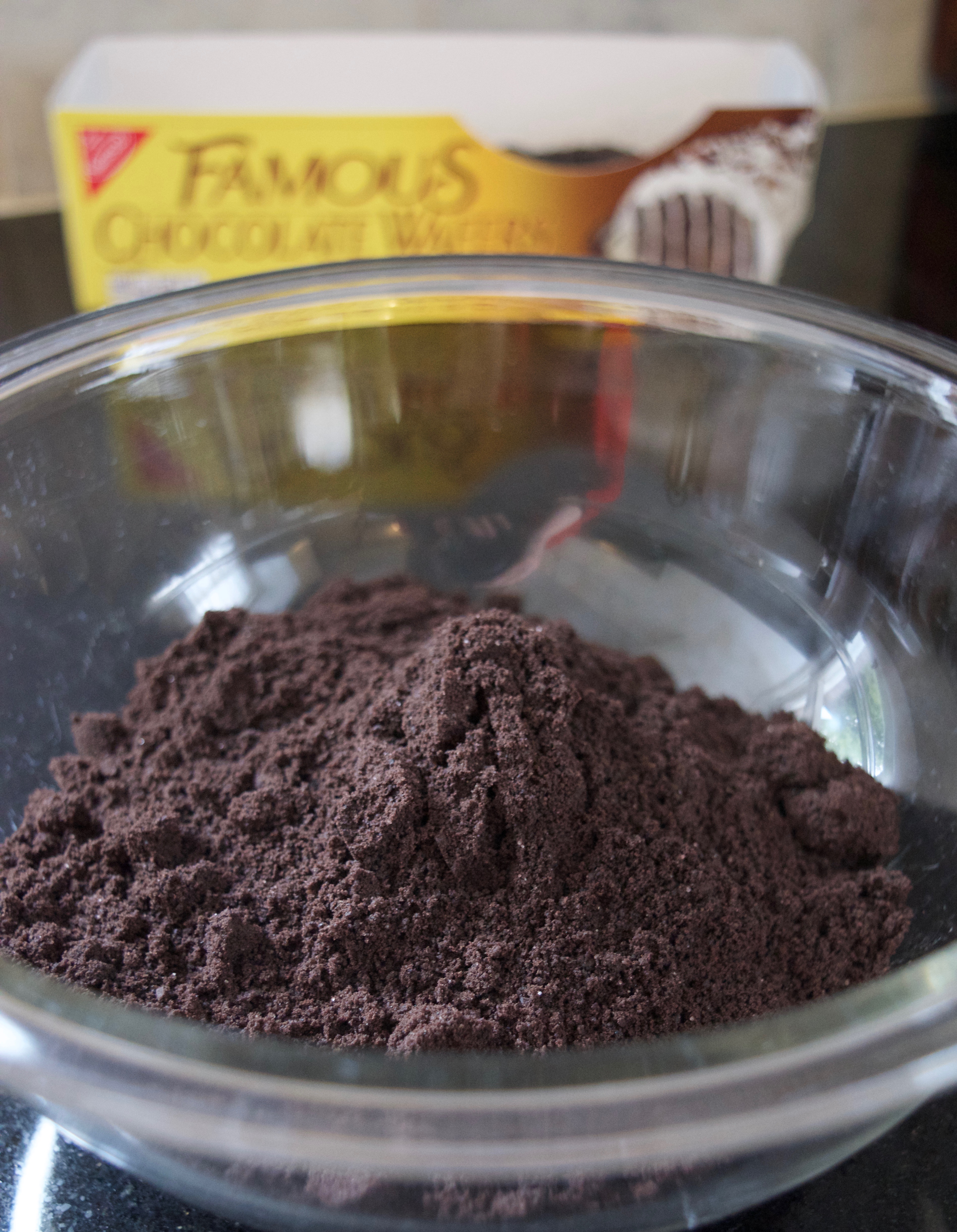 Nabisco chocolate wafers are my go-to cookies to use for this type of pie crust. They aren’t as easy to find as they used to be, and are usually hidden in the ice cream section with the ice cream cones and toppings. I’ve always wondered why the Nabisco chocolate wafer doesn’t reside in the cookie section with its close cousin, the chocolate graham cracker.