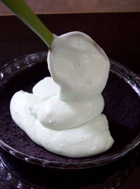 - Once marshmallow mixture is cooled, add crème de menthe and crème de cacao and whisk until smooth. There should be no lumps.