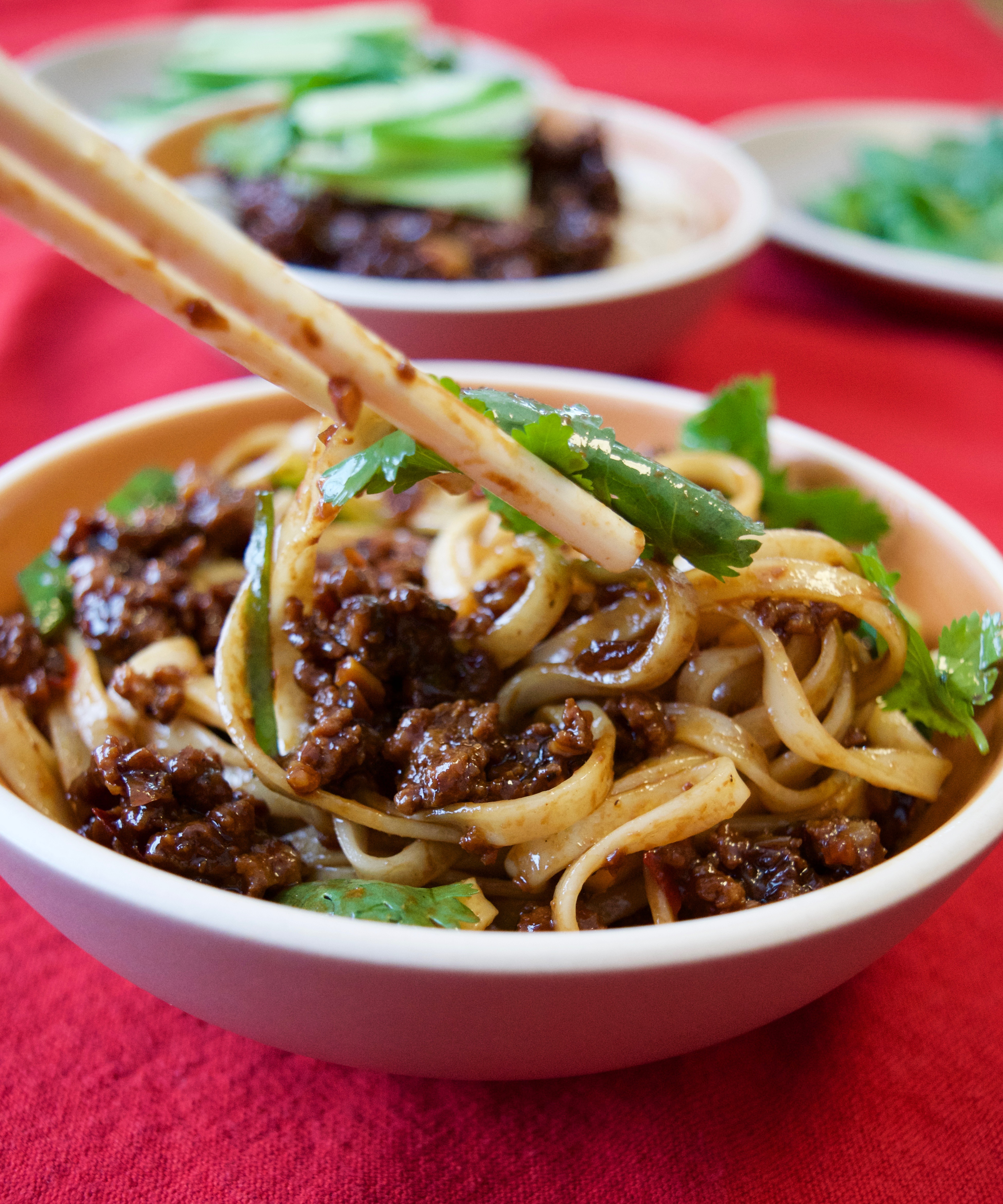 The dish of chewy noodles with a rich, meaty sauce is one of those dishes that you don’t really need to mess with too much. I call it Chinese spaghetti, but it really is so much more. The name zha jian mian means fried sauce noodles, and is a speciality of Beijing, but can also be found throughout China. There’s even a Korean rift of the dish, which in my opinion pales in comparison to the Chinese version.  But I suppose you could say that I’m a bit biased.